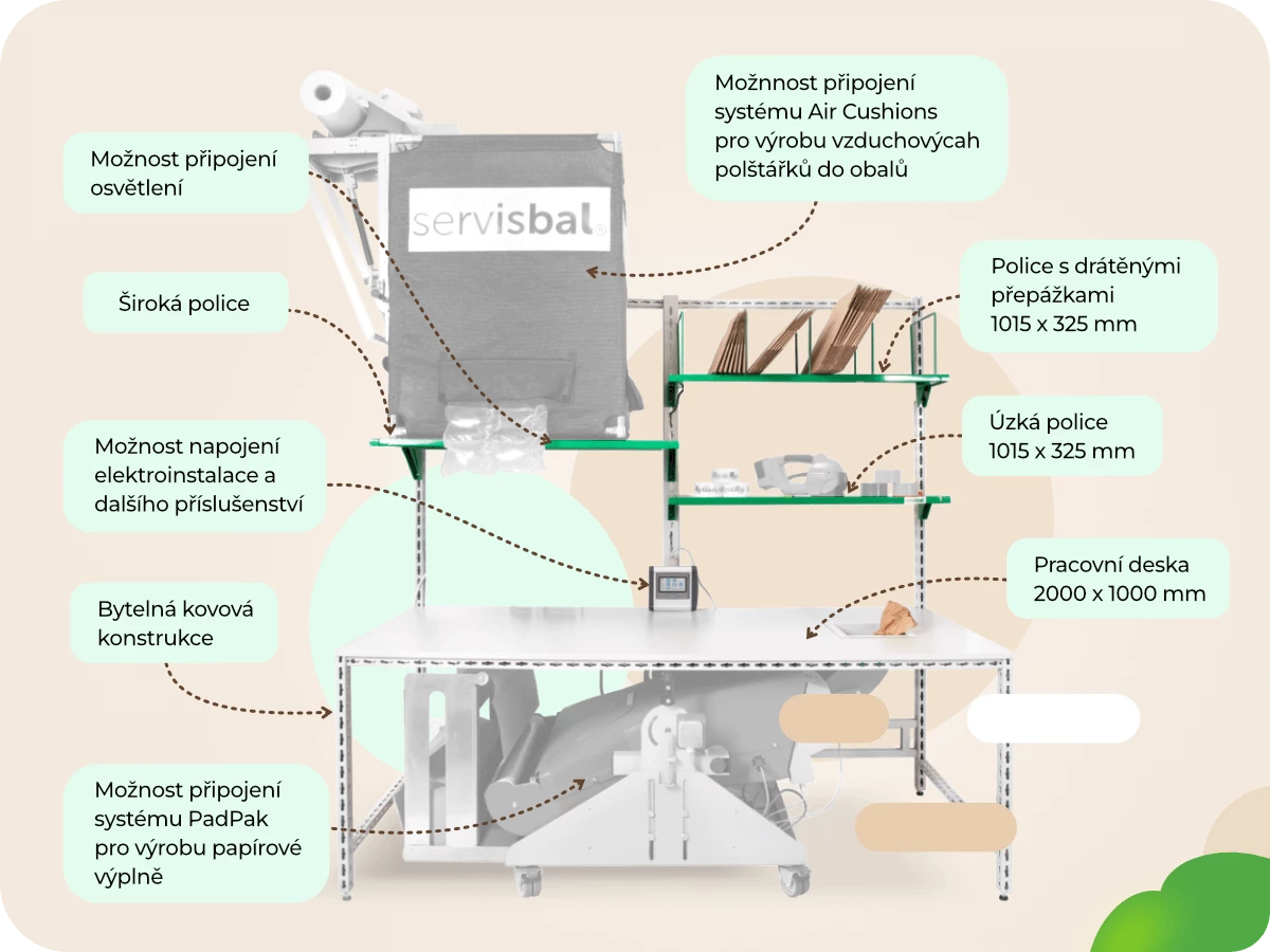Díky balicímu stolu nemusí pracovníci nikam odbíhat a vše potřebné mají v dosahu. - Bytelná konstrukce