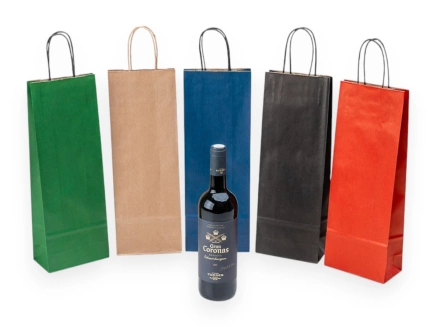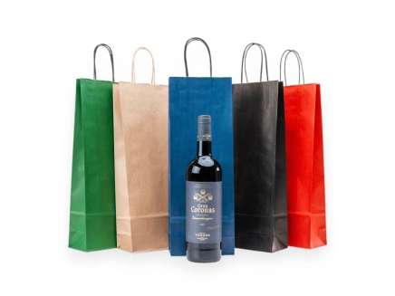 Univerzální papírová taška na víno s krouceným uchem je ideální na rychlé zabalení firemních i osobních dárků. Využijete ji ve vinotékách, na stáncích, veletrzích, podnikových akcích a vlastně všude, kde je potřeba v okamžiku vykouzlit z produktu dárek.
