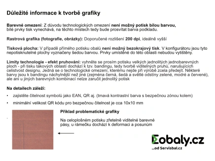 - editací předpřipravené šablony (Nahrajte tisková data). Stáhněte si přiloženou šablonu (výkres) a ve svém grafickém programu do ní nahrajte požadovaná data. V příloze „Příprava tiskových dat“ najdete všechny potřebné pokyny k vytvoření správného tiskového formátu. Hotový soubor pak už jen stačí znovu nahrát. Tento postup doporučujeme v případě, že už máte s tvorbou grafiky zkušenosti nebo využíváte služeb profesionálního grafika.