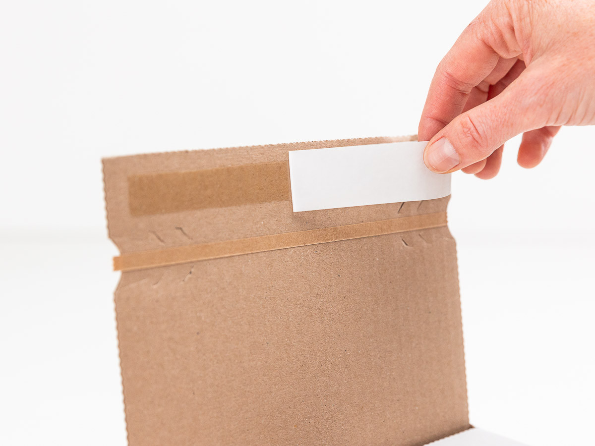 - rychlé a snadné uzavření bez nutnosti dodatečných samolepicích pásek – integrovaná lepicí páska bezpečně uzavře horní klopy krabice