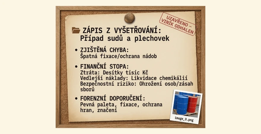 Jenže nebezpečný obsah se nebalí „aby to nějak drželo“. Balí se tak, aby to přežilo náraz, tlak i posun při prudkém brzdění. Jedna uvolněná nádoba, jeden promáčknutý plášť, jedna netěsnost – a ze zásilky je rázem událost. Často i s majáky bezpečnostních sborů.