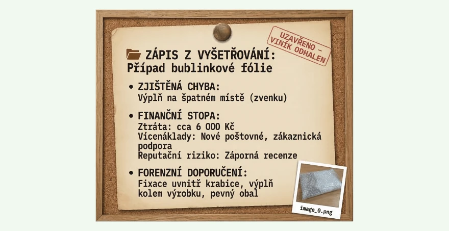 Pamatujte – fólie patří dovnitř, přímo kolem výrobku. Obsah musí být zafixovaný, aby necestoval. Obal má nést tlak, výplň má tlumit náraz. Každý má svou roli. A když se to splete, účet může být dost mastný.