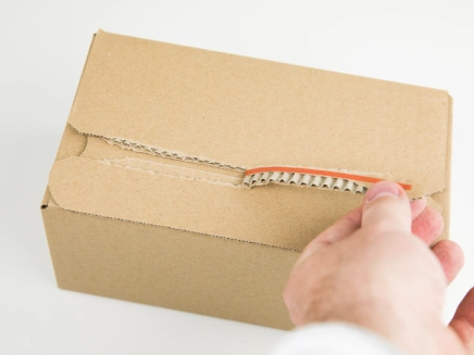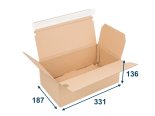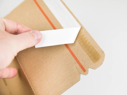 - rychlé a snadné uzavření bez nutnosti dodatečných samolepicích pásek – integrovaná lepicí páska bezpečně uzavře horní klopy krabice
