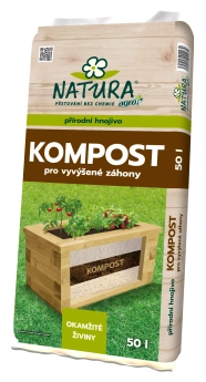 Druhou vrstvou je NATURA kompost, tvořící další třetinu objemu hmoty v záhonu. Je vyroben kompostováním pouze přírodních surovin rostlinného původu s přídavkem dolomitického vápence. Obsahuje vysoký podíl humusu, dodává rostlinám dlouhodobě základní živiny i mikroprvky. Při jeho přirozeném rozkladu se uvolňuje teplo, půda se prohřívá a rostliny tak mají impuls a energii k růstu. Neobsahuje semena plevelů. Kompost se v průběhu pěstování přirozeně míchá s vrchním substrátem a je vhodné jej občas doplnit. Stejně jako se doplňuje vrchní vrstva.