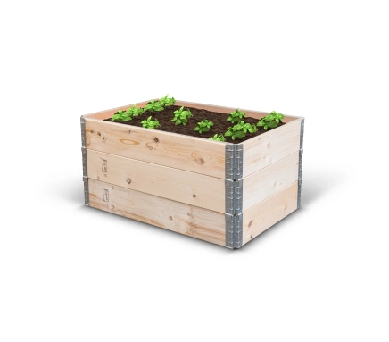 Náš nový set paletových ohrádek vám umožní snadno vytvořit vyvýšený záhon 1200x800x600 mm. Tvoří ho tři paletové ohrádky 1200x800x200 mm Tyto dřevěné rámy spojené kováním do tvaru obdélníku jsou nejen praktické, ale také estetické.